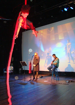O bate-papo da cantora, escritora e poeta Angéliza Rizzi com a artista circense Débora Rodrigues, no Quarta Tem Sarau no Quarto – Poetas Iluminadas, que nesta semana, excepcionalmente, foi realizado na quinta-feira, dia 8 de setembro, reuniu um bom público que teve a oportunidade de interagir com as artistas. Os participantes ganharam de presente uma apresentação de Débora nos tecidos, que ainda falou sobre a sua formação circense e acadêmica, deu dicas para os interessados na arte que desenvolve, entre outros assuntos. A música ficou por conta de Chico Merg.